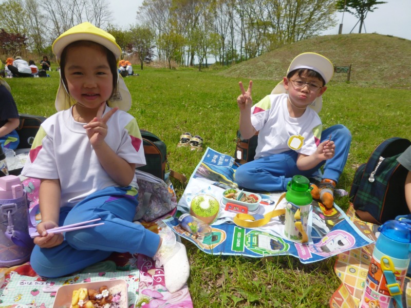 先々週は、御山野楽校に行ってきました!三角はねばしを渡ったり池の中の生き物を観察したりと自然を満喫しましたよ。外で食べるお弁当は格別のおいしさでした!初めてのレジャーシートも上手に敷いていましたよ☺年少組のときよりも頼もしさを感じました✨