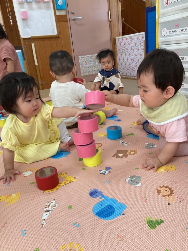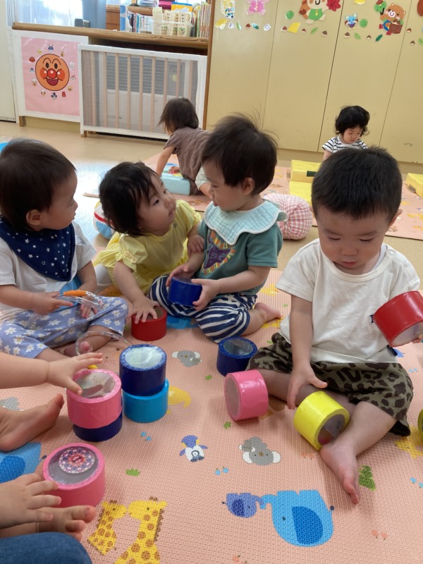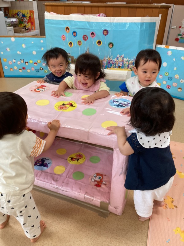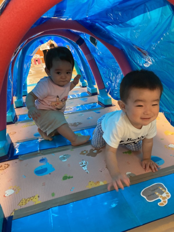 お部屋では、頑張って足をあげて歩いてみたり、トンネルの中をハイハイしたり、いろいろな動きを楽しみながら遊んでいます!