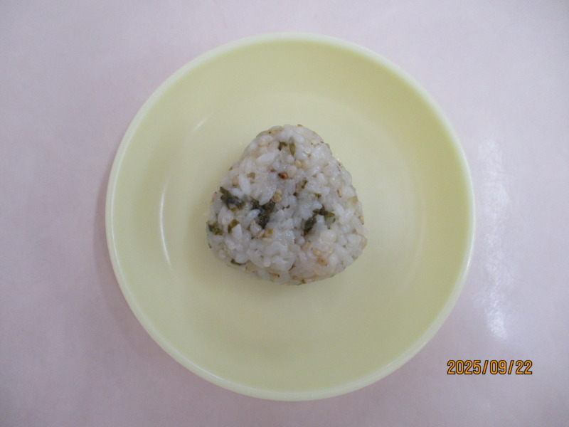 保育園の手作りおやつは、海苔ごまおにぎりです。