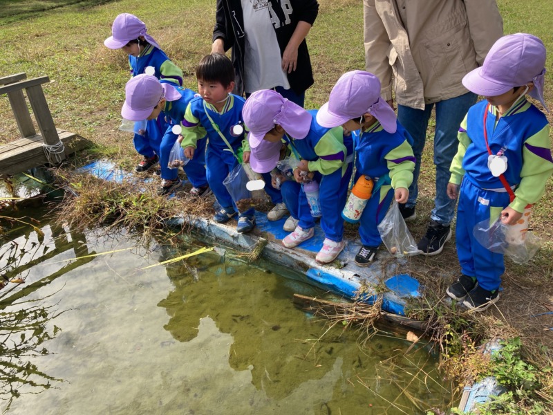 10月14日(火)には御山野楽校に行ってきました。御山は秋でいっぱい🍁!あけび、いちじく、柿、栗がなっているのを見つけて、びっくり😲!栗のイガイガをそ~っと触ってチクチクする感触に友達と笑ったり、栗を夢中で拾ったりして大喜びの子どもたちでした😊
