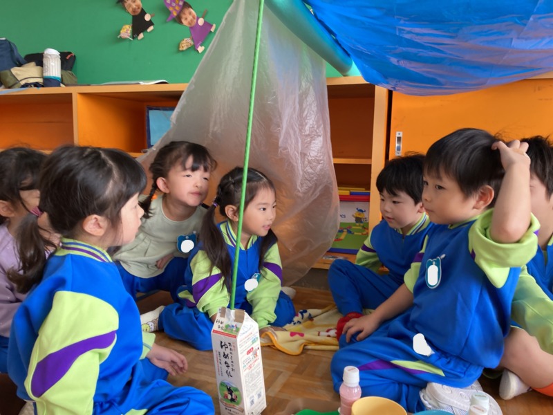 最近は、ヒーローに変身したり、お店屋さんごっこやキャンプごっこをしたりして盛り上がっています!「一緒に遊ぼう♪」とお友達と誘い合ってお話を楽しみながら、にこにこがいっぱいの年少さんです😊