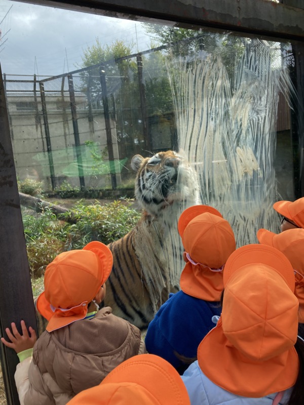 21日(火)は、園外活動で大森山動物園に行ってきました。間近で動物を見て「大きいね!」「首が長い!」「かわいい~」などいろいろな発見をして楽しんでいました。園に帰ってからは、みんなでお弁当を食べたり、動物のクイズを解いたりして楽しみましたよ。