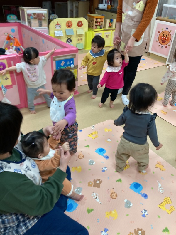 お友達に手を差し延べて、「おててつなごう?」と誘うかわいらしい場面もありました☆