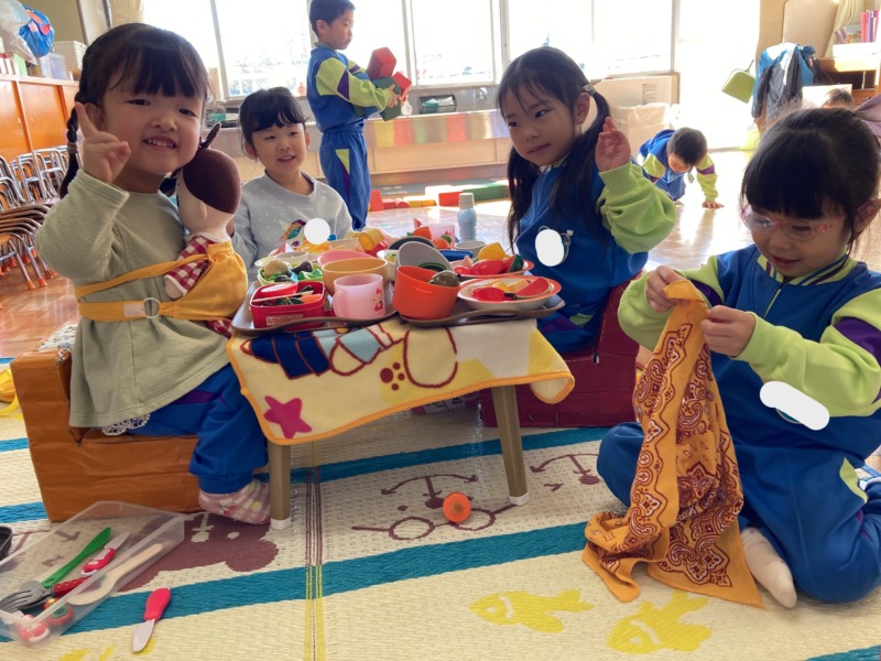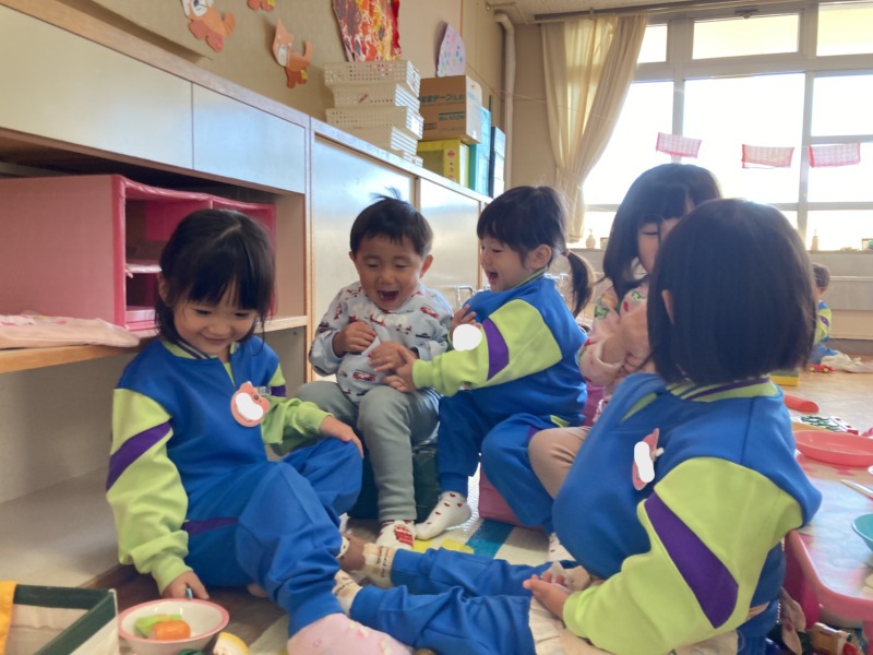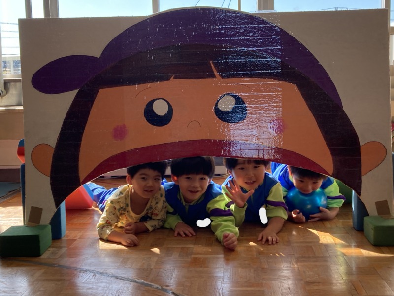 最近は、お医者さんごっこやお家ごっこなど役になりきって、お友達とお話をしながらイメージを膨らませて遊んでいます。また、運動会の親子競技で使ったゴールをトンネルに見立てて、トンネルの中に向かってボールを転がし工夫をして楽しんでいますよ🎵