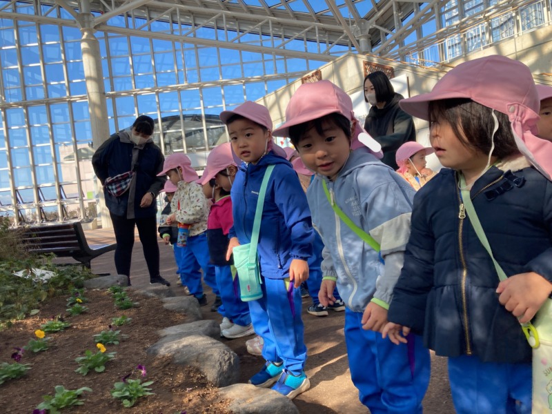11月5日にポートタワーセリオンに行ってきました。バスの中から見えた大きな船はとても迫力があり、「すごい!!大きい!」「乗りたいな!」と話し、到着前から子どもたちは興味津々でした♪セリオンタワーに上ると、お天気がよく海やきれいな景色が遠くまで見えていました。子どもたちは小さく見える乗り物や建物を発見すると、「○○あるよ!」などと楽しそうに景色を眺めていましたよ。セリオンリスタでは普段あまり見られないような大きな植物を見たり、すべり台などの遊具で遊んだりして身体を動かして楽しみました!
