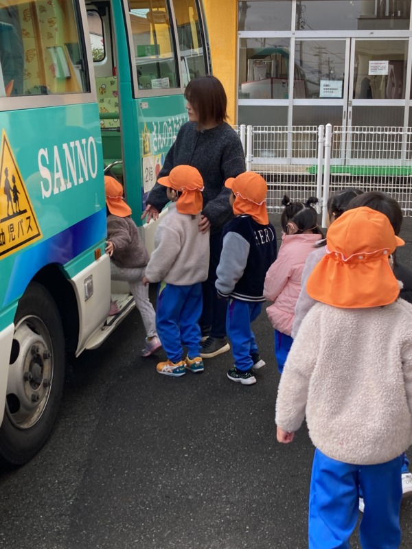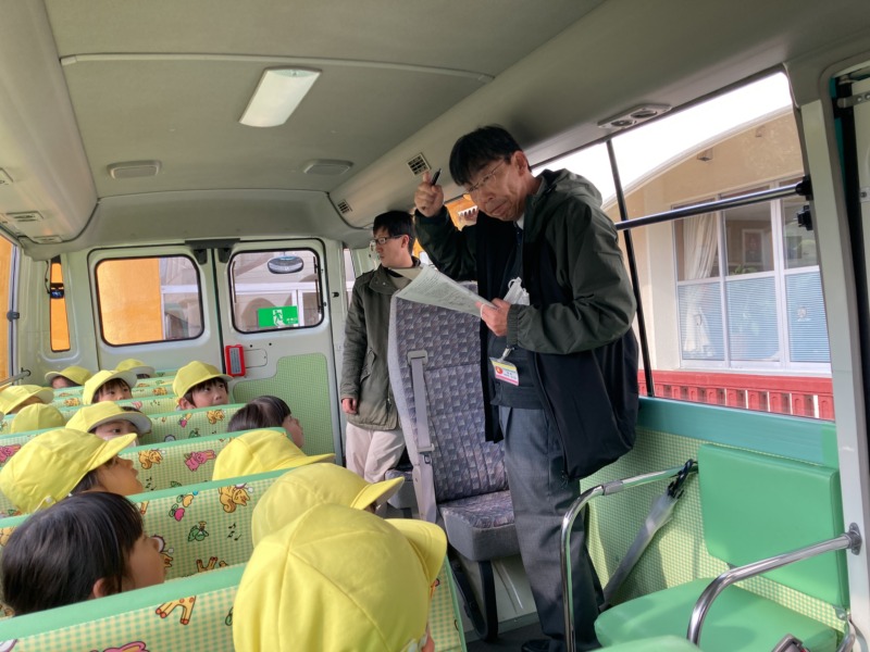 避難訓練がありました。今回は、地震からの津波を想定した避難の仕方について確認しました。年中さんは、バスで避難しました。素早くジャンバーを着たり、先生の話をしっかり聞いたりして、落ち着いて避難することができていました。