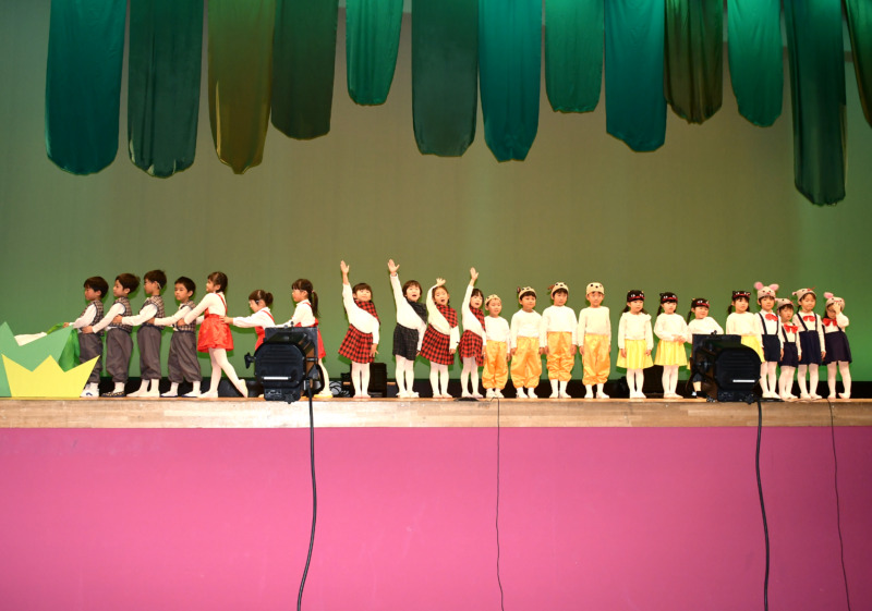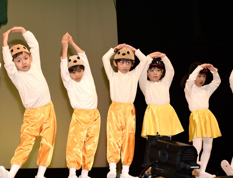 11月21日(金)に秋田県児童会館で発表会が行われました。年中さんは、劇『おおきなかぶ』をやりました。発表会までには、台詞の動きを友達と一緒に考えたり、歌を歌いながら踊ったりして楽しみながら取り組みました。また、全部の役の台詞や踊りを踊ったり、友達と役を決めて演じたりするなど、友達と役になりきって演じる楽しさを味わう姿も見られました。