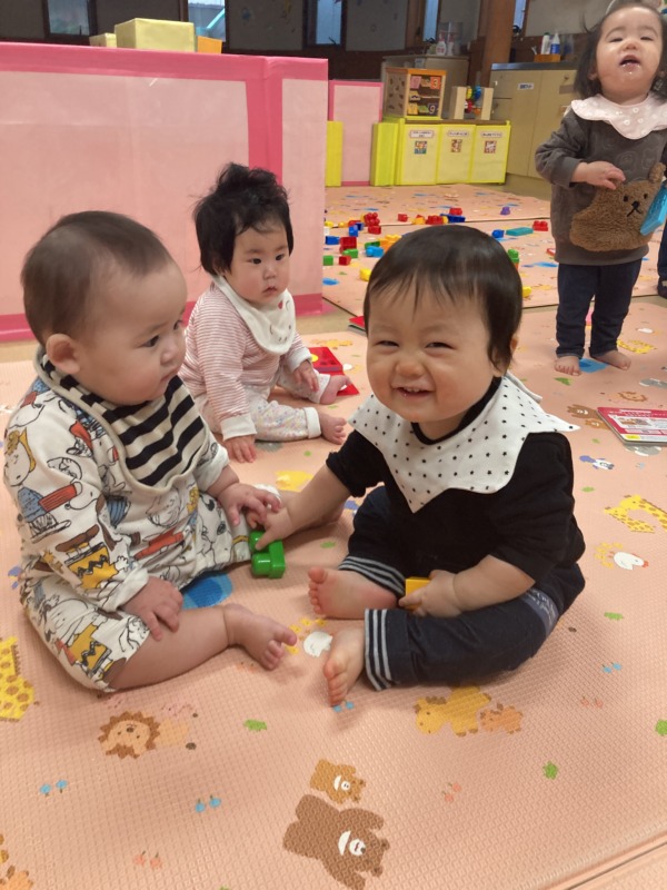 お友達におもちゃを持ってきてくれたり、一緒に感触マットを触ったりしてにこにこ😊