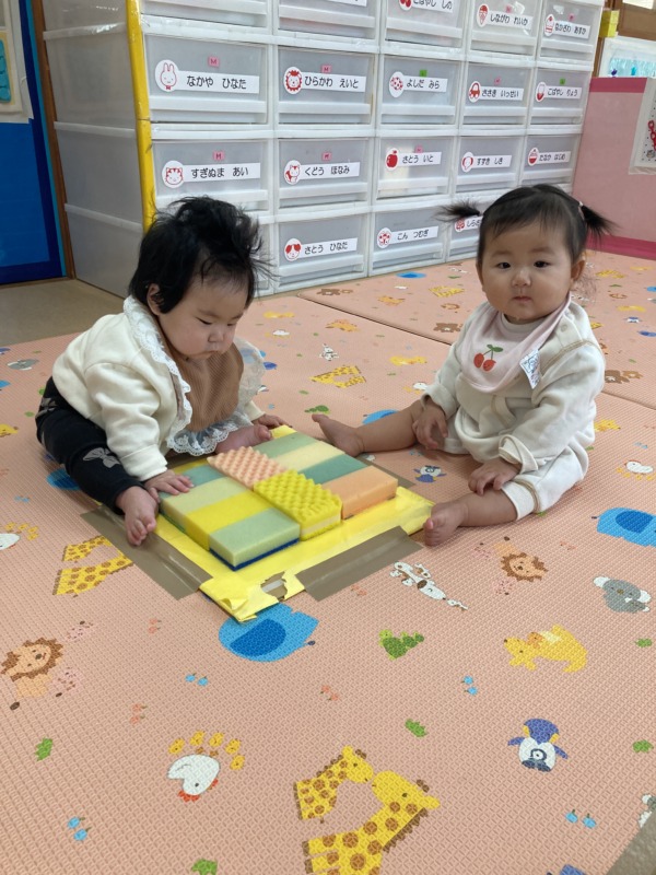お友達におもちゃを持ってきてくれたり、一緒に感触マットを触ったりしてにこにこ😊