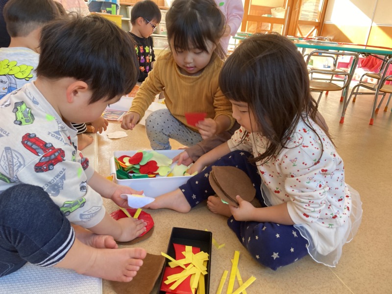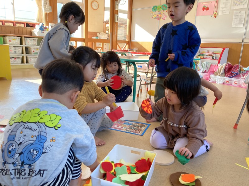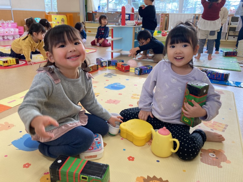 ごっこ遊びが大好きな子どもたちは、「今日はままごとしないの?」とキッチン台が出てくるのをワクワクしながら待っています。「いらっしゃいませ~」の元気な声や、「これもとってもおいしいですよ!」と商売上手な姿がほほえましいです♡
