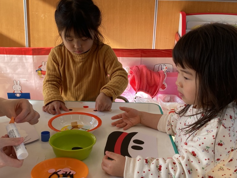 雪を見て「雪だるま作りたい!」「サンタさんきたかな~?」と、冬の訪れやクリスマスを心待ちにしている2歳児さんたち。