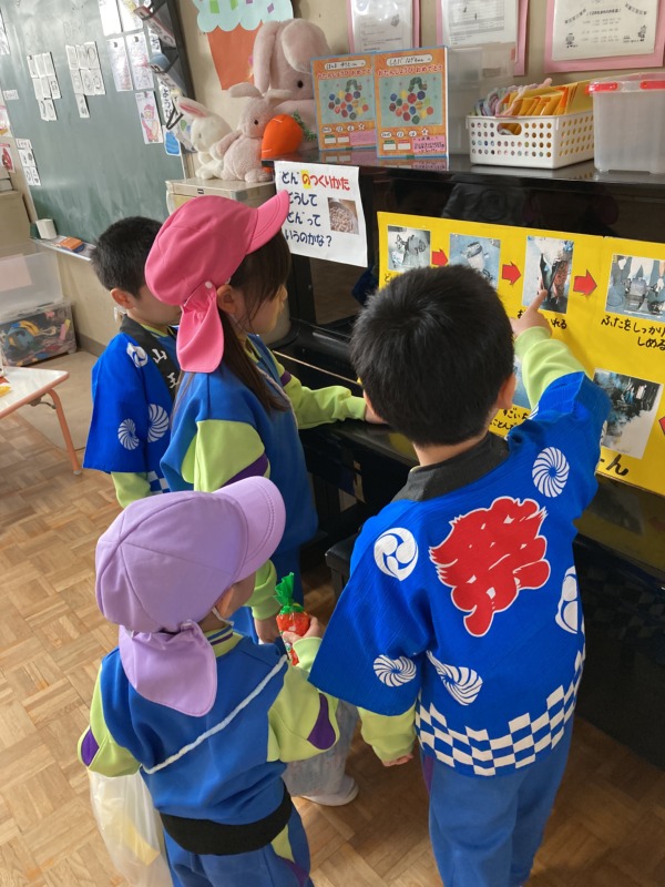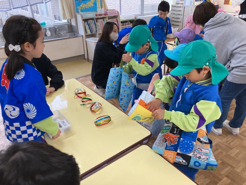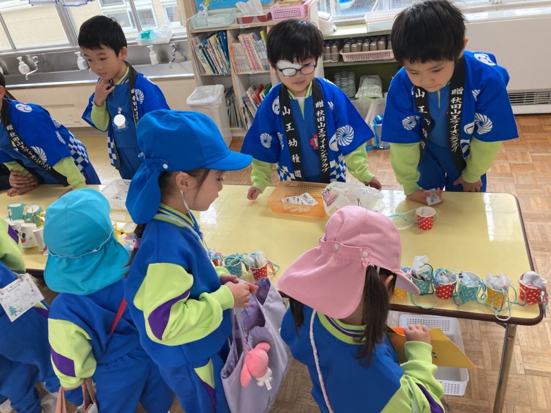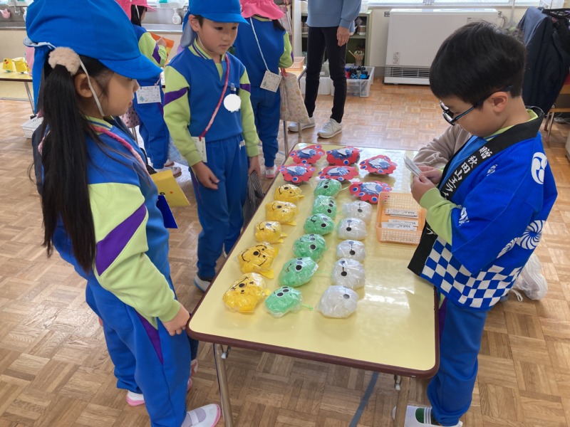 また、買い物では年少さんのお世話をしながらいろいろなお店を回って楽しみました♪お買い物の際には、お金を数えてあげたり、年少さんが行きたいお店に連れて行ってくれたりと優しく接する姿がたくさん見られましたよ。「お世話大変だった~」と言いながらも満足げな年長さんでした!