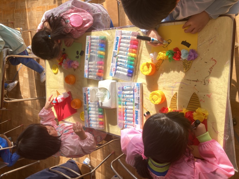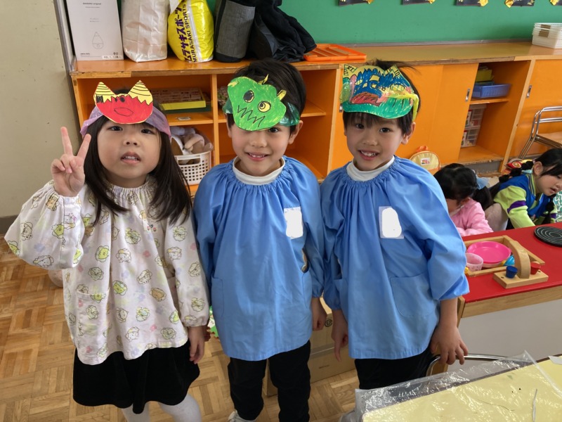 2月の節分に向けて、各クラスでは、豆まき用の豆や豆入れを手作りしました!「鬼を倒すために豆をいっぱい作るぞー!」と、新聞紙をたくさん丸めて作りましたよ。豆入れは、鬼の髪の毛の色をカラフルにしたり、怖い顔・かわいい顔にしたりと、思い思いに制作を楽しんでいました!