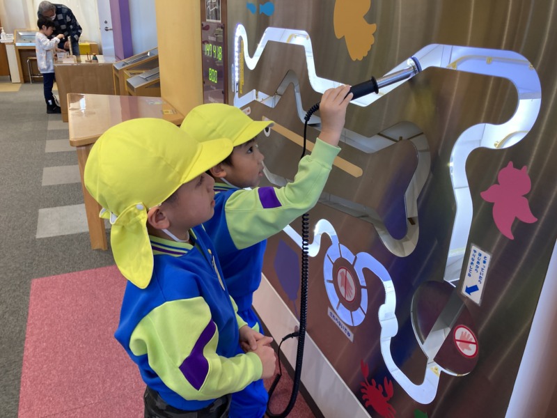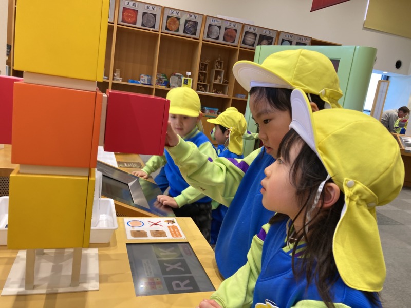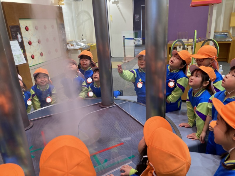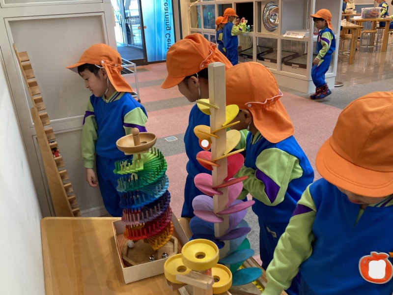 園外活動でアルヴェの『自然科学学習館』に行ってきました!竜巻発生器や、音の仕組みが分かる機械などに興味津々な子どもたち。園にはない玩具も楽しんでいましたよ!