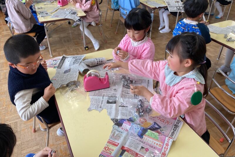 2月の節分に向けて、各クラスでは、豆まき用の豆や豆入れを手作りしました!「鬼を倒すために豆をいっぱい作るぞー!」と、新聞紙をたくさん丸めて作りましたよ。豆入れは、鬼の髪の毛の色をカラフルにしたり、怖い顔・かわいい顔にしたりと、思い思いに制作を楽しんでいました!