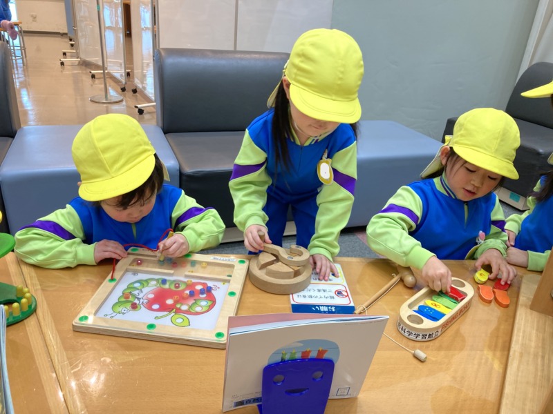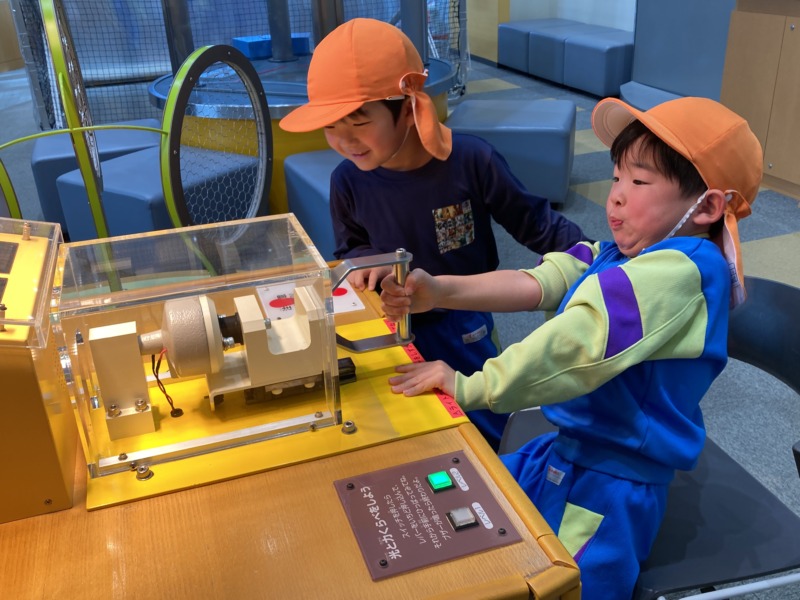 園外活動でアルヴェの『自然科学学習館』に行ってきました!竜巻発生器や、音の仕組みが分かる機械などに興味津々な子どもたち。園にはない玩具も楽しんでいましたよ!