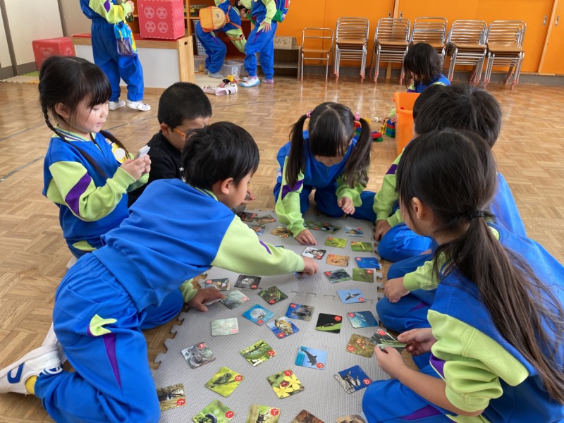 3学期が始まり、久しぶりに会う友達との再会を喜びながら過ごしています。2学期に自分たちで作ったすごろくで遊ぶために、空き箱や画用紙などでコマを作りました。じゃんけんで順番を決めたりルールを教え合ったりと上手に遊んでいますよ☺かるた遊びでは、読み札を一生懸命読んだり、友達よりも早く札を取ろうとしたりしながら楽しんでいます!