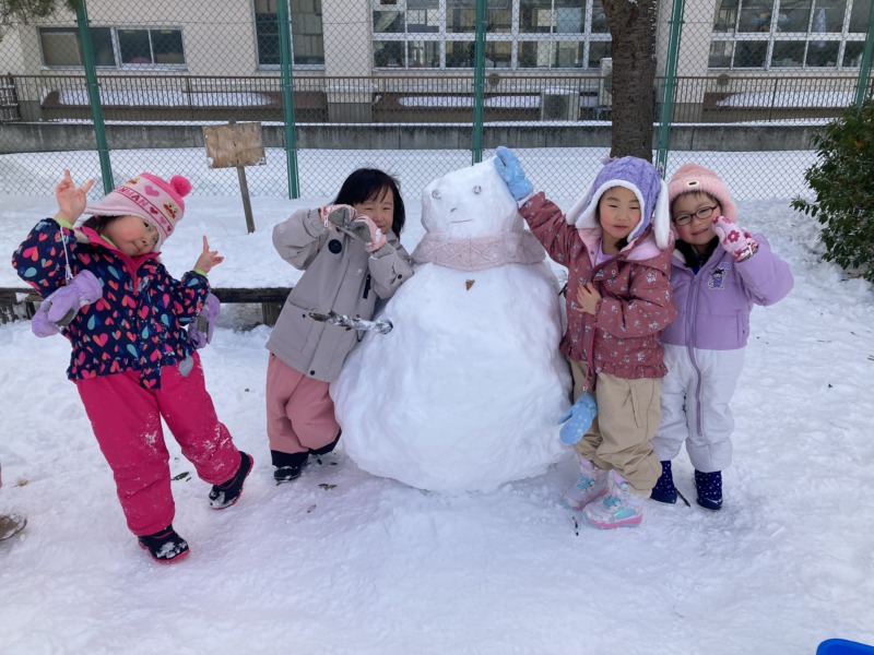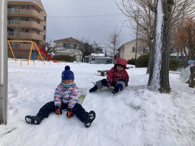 雪遊びも楽しみましたよ!友達と協力して雪だるまを作ったり、米袋のそりで滑ったり、友達をそりに乗せて引っ張ってあげたりしました⛄雪合戦では、遠くからそーっと近付いたり、隠れたりするなど工夫して遊んでいましたよ!