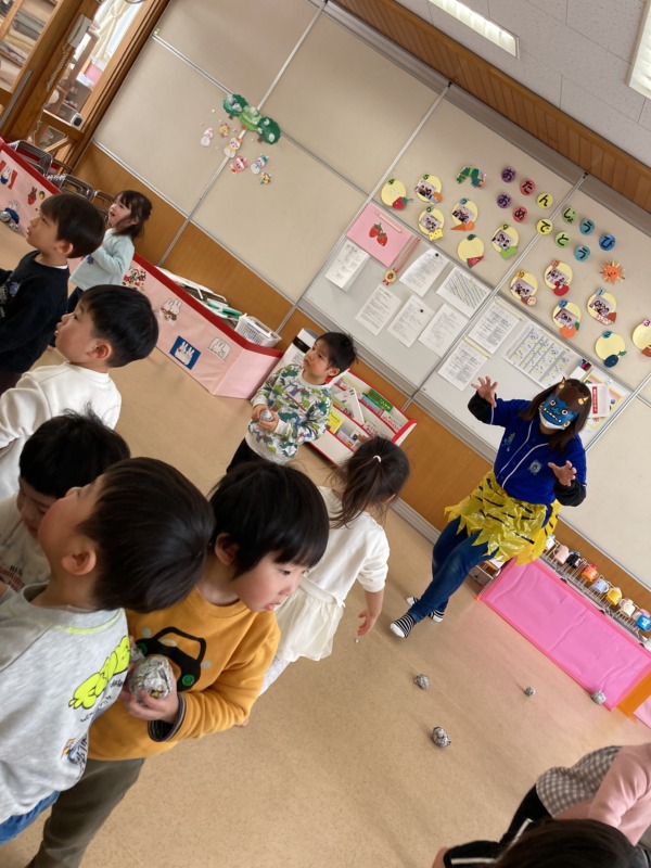 「えーんえーんしてる鬼に当てたい!」と鬼の表情を見て、退治したい鬼を自分で選ぶ姿も見られ、当たると「やったー!」と嬉しそうな声をあげていました!
