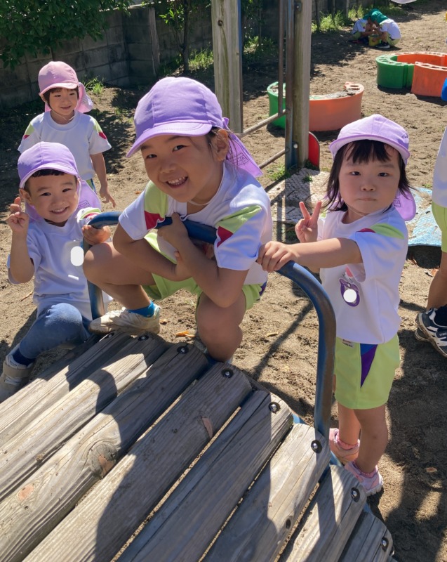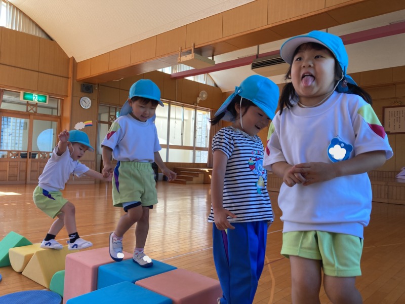 お外では、虫探しをしたり、さんさん号などの遊具で遊んでいました。ホールでは、ソフト積み木を使い、一本橋をお友達と一緒に作ったり、体をいっぱい動かしたりして楽しんでいました♪