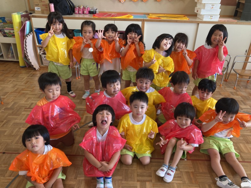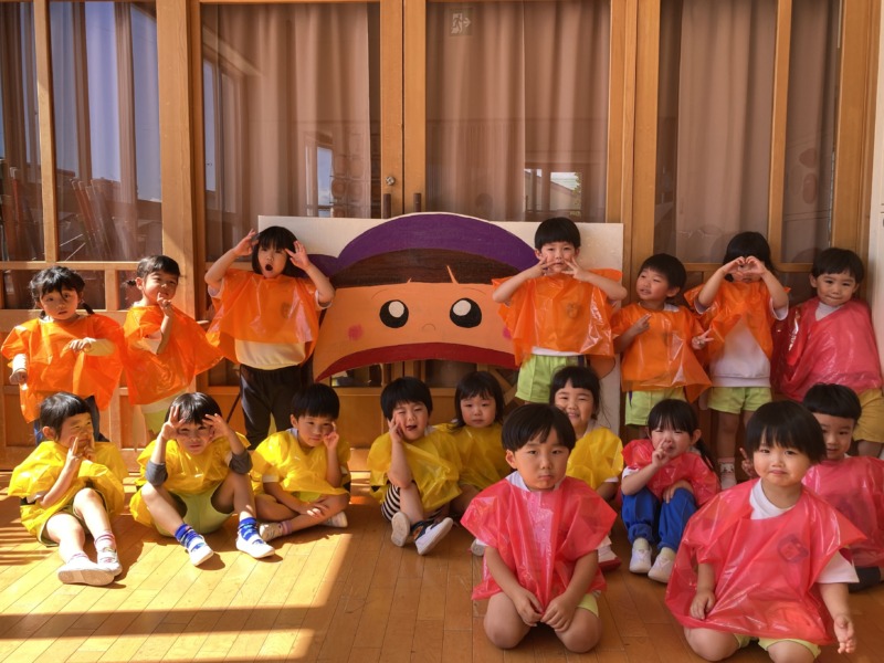 年少さんの親子競技は、みんなでお寿司に変身!自分たちでお寿司の衣装を作りました。
