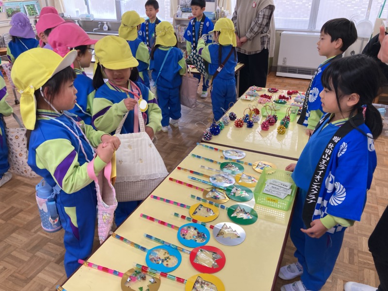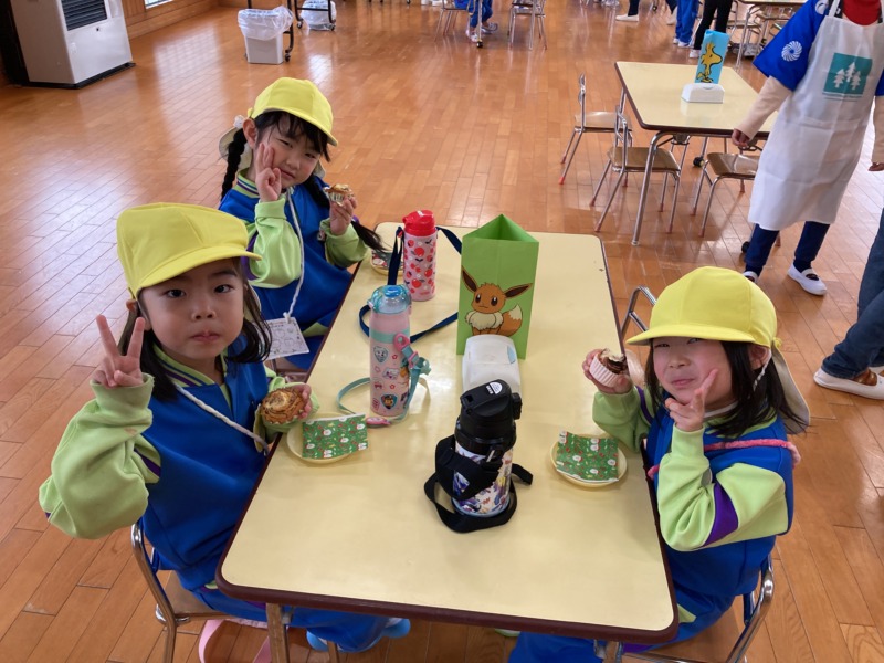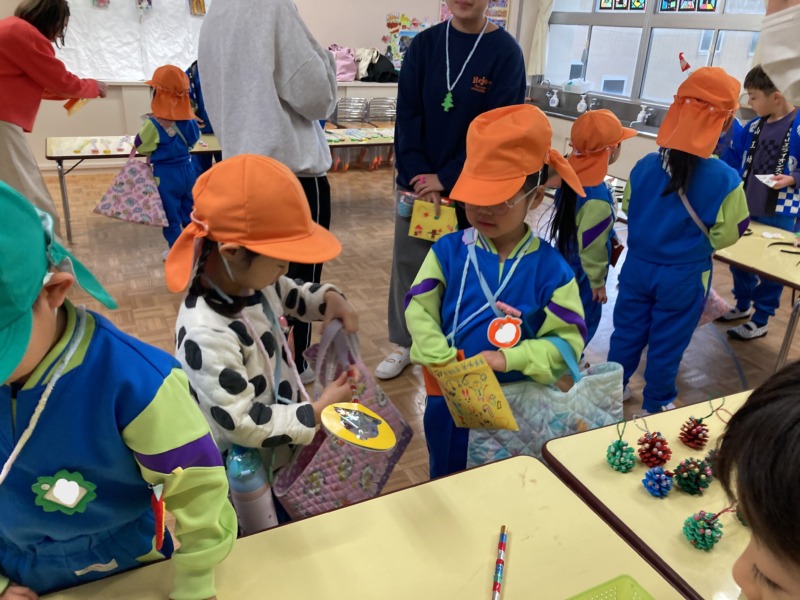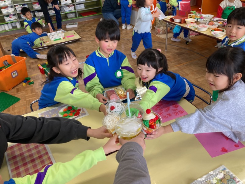 さんさんまつりをとても楽しみしていた年中さん!「最初にクリスマス屋さんに行きたい!」「次は、○〇ちゃんが行きたいところに行こう!」など友達と行きたいお店を話し合いながら、お買い物をしていました♪シューティングやわなげのゲームに挑戦したり、歌ってゴー!(カラオケ屋さん)で歌ったりして楽しんでいましたよ!さんさんカフェでカップケーキを食べ、「おいしい~!」と大満足な年中さんでした♡