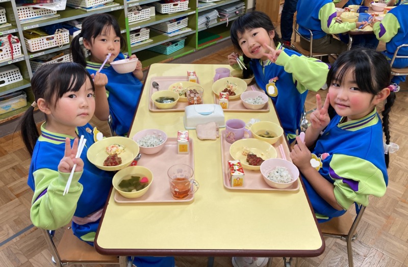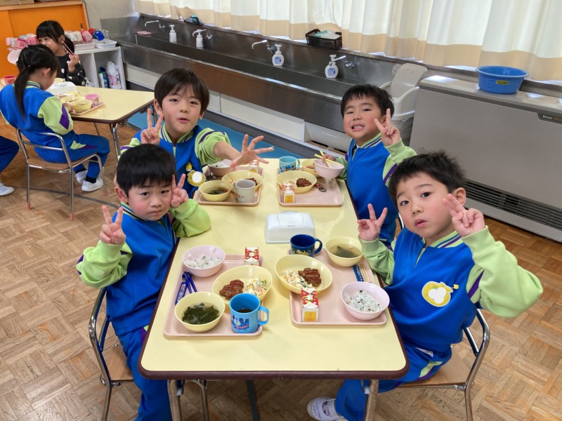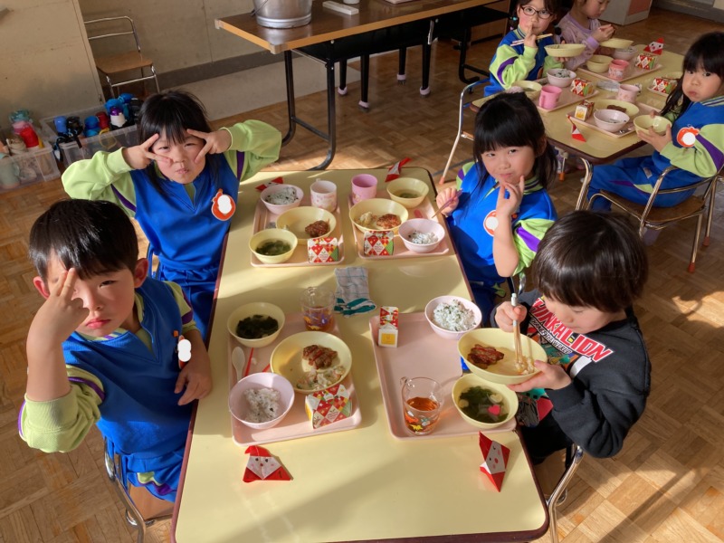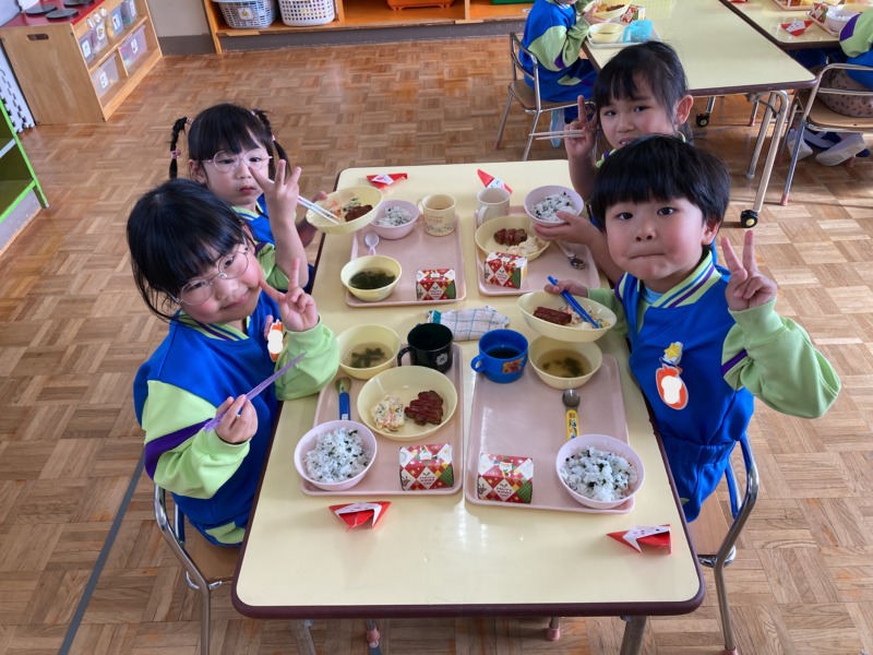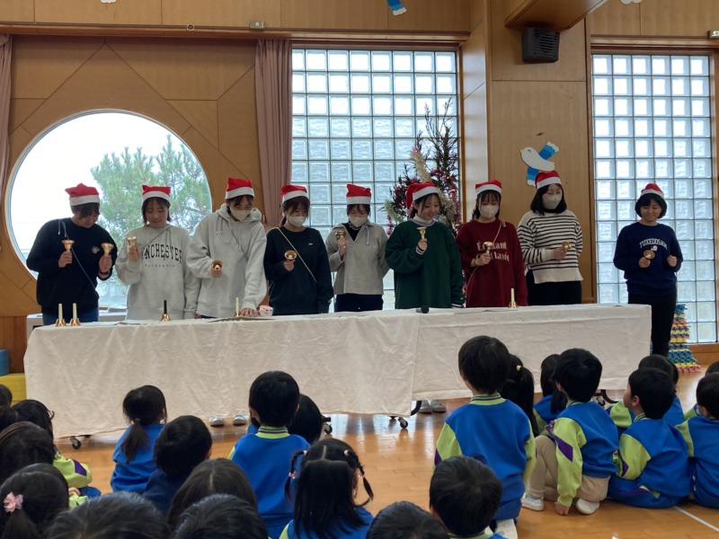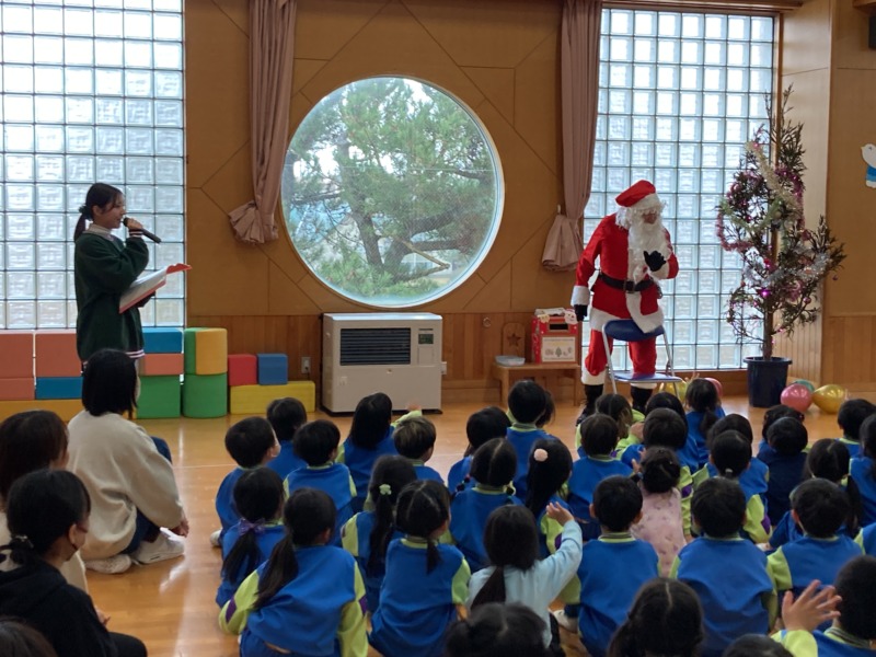 12月18日にクリスマス会がありました。サンタさん登場に大盛り上がり!サンタさんに質問を答えてもらったり、ハイタッチをしたりしてとても嬉しそうでしたよ☺先生たちのハンドベルの演奏も楽しみました。クリスマス会の後は、クリスマスの特別給食を食べたり、ジングルベルのフォークダンスを踊ったりして楽しみましたよ♪