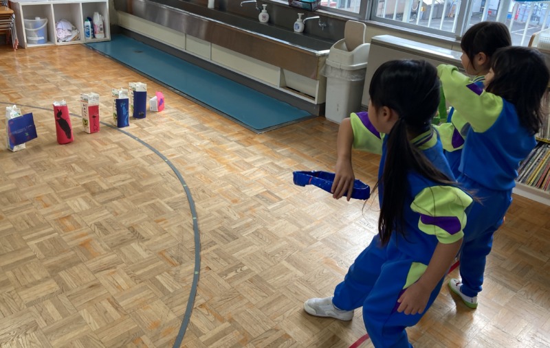 ひまわり組では、引き続きレストランごっこが盛り上がっています!ランチョンマットを用意したり、お客さんが来る前にテーブルを拭いたりと準備もばっちり!お客さんが来ると、「いらっしゃいませ~!」「なににしますか~?」と元気な声が飛び交っています♪たんぽぽ組では、輪投げ屋さんを楽しんでいます!さんさんまつりでの経験を生かしながら、画用紙を丸めて輪を作ったり、値段の表示を作ったりしていますよ。