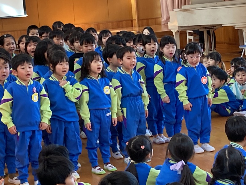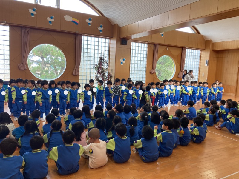 12月22日に終業式がありました。年少さんは「あわてんぼうのサンタクロース」年中さんは「こどものせかい」年長さんは「聖者が街にやってくる」を歌いました。2学期、たくさんの行事を通してまた一回り成長した子どもたち。冬休み期間も元気いっぱいに遊びたいと思います♪
