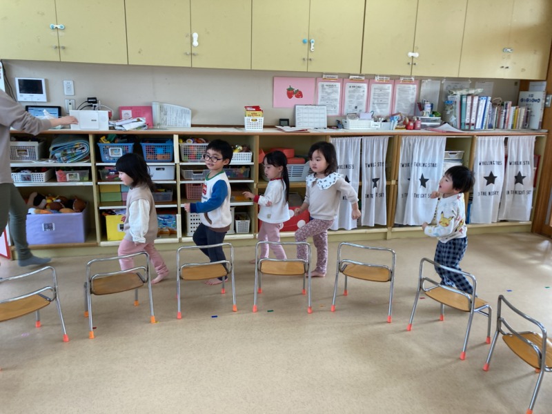 保育者の話を聞いたり、お約束を守ったり、すっかりお兄さん、お姉さんになってきた子どもたち。絵合わせカードやフルーツバスケット、椅子取りゲームなど、ルールを守って遊ぶことも上手になっています✨