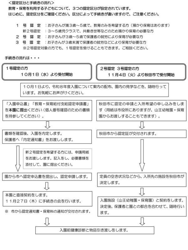 1. 保育料:秋田市の定めるところの保護者の所得に応じた保育料となります。