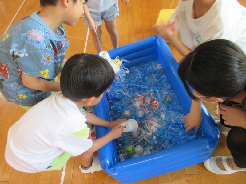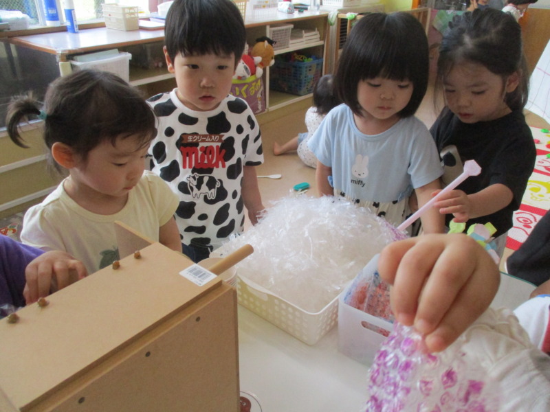 ひんやりとした氷遊びを楽しんだ2歳児さん